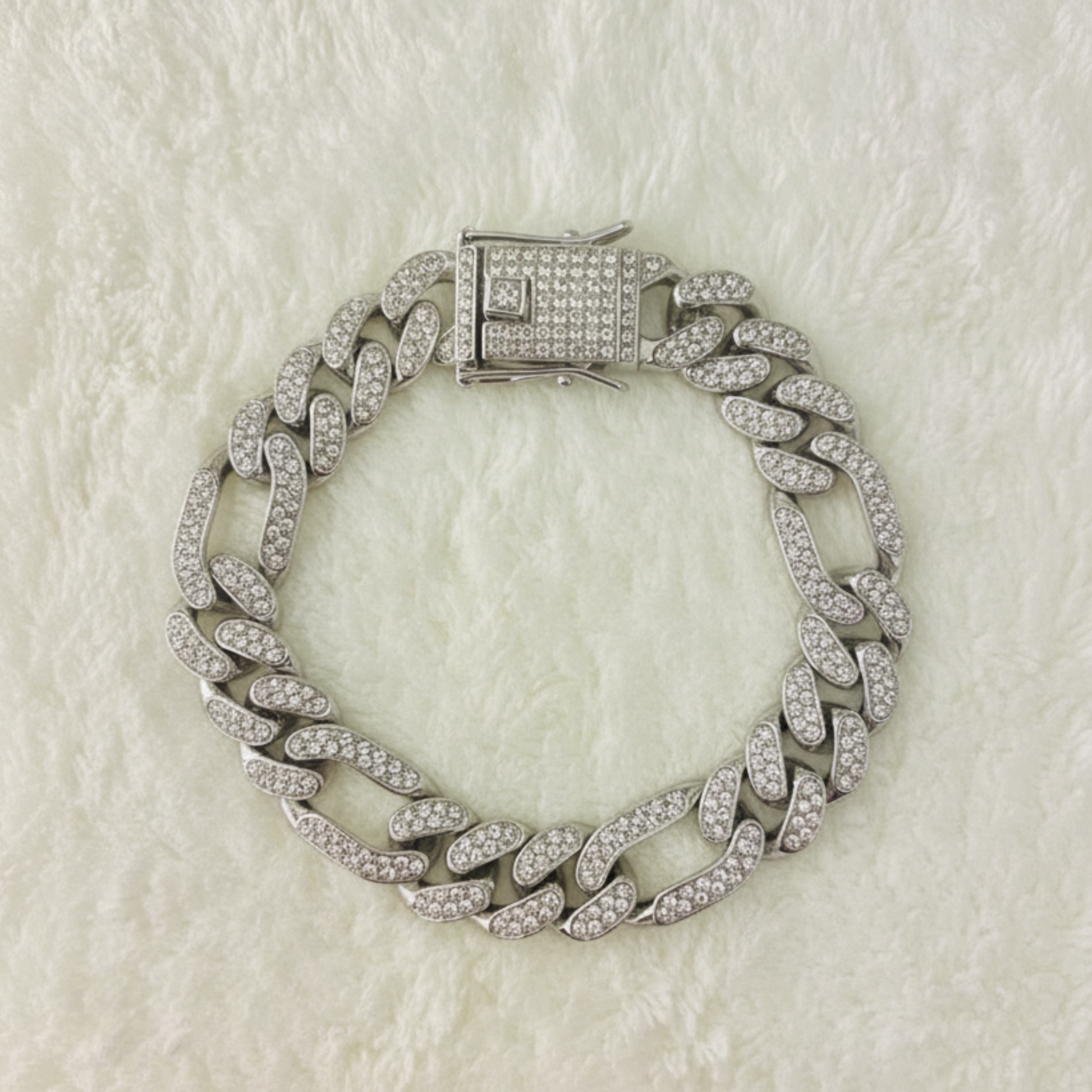 This Cuban Link Bracelet is crafted with a bold chain design and encrusted with sparkling stones for a luxurious finish. Perfect for adding a touch of elegance and shine to any outfit.