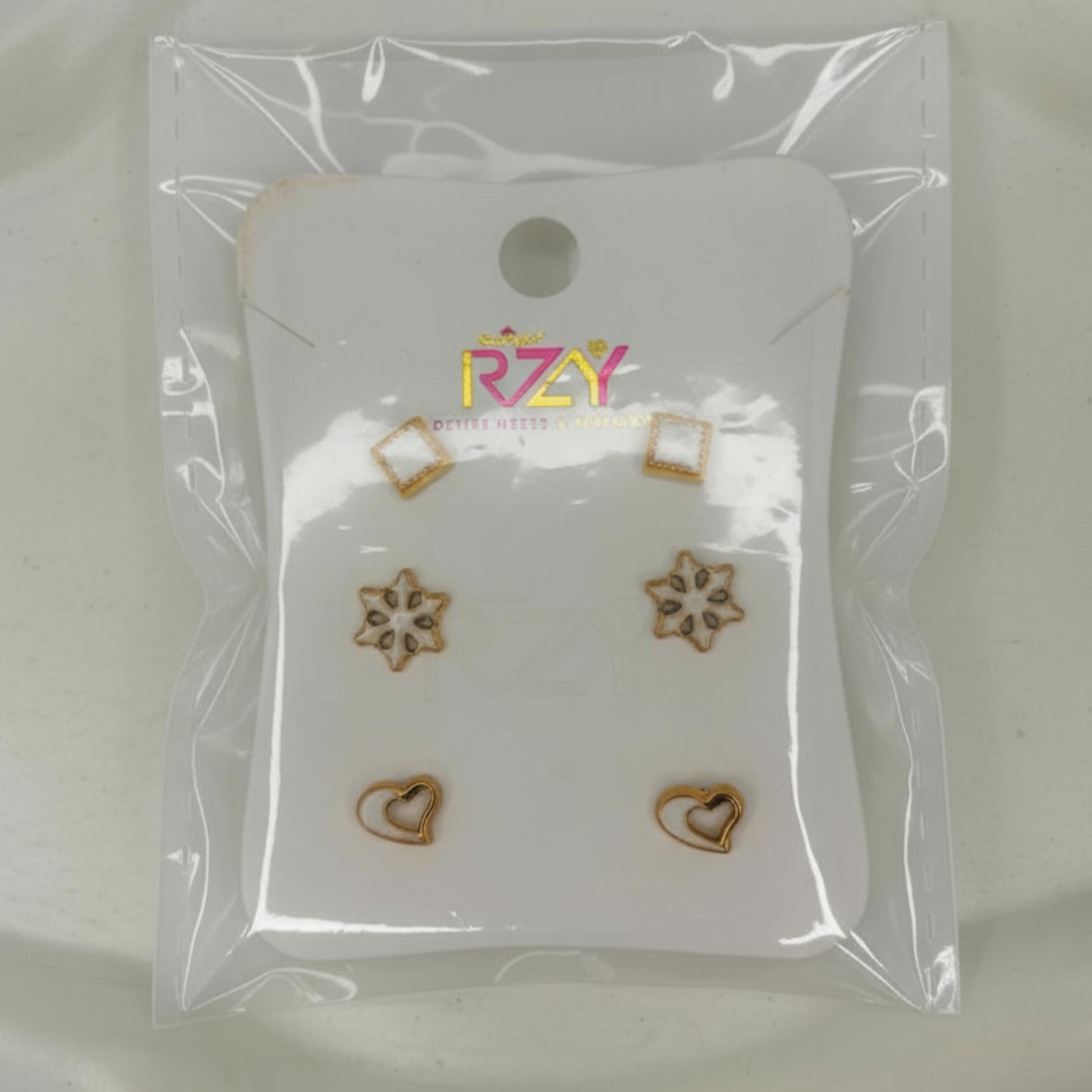 Stud Earrings Set with Card 3 Pairs/set Crystal Earrings / 250 per pair set
